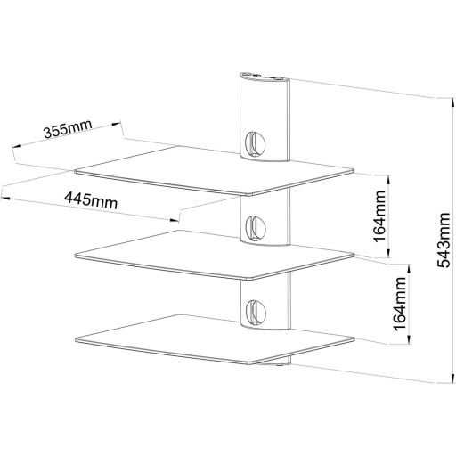 Półka ścienna pod tuner, dekoder, zegar itp. Przeznaczenie: montaż na ścianie poniżej telewizora. Kable można poprowadzić wewnątrz aluminiowej pokrywy dzięki czemu otoczenie wygląda estetyczniej. Kompatybilna ze wszystkimi uchwytami ART do TV. Przyjazny system montażu. Wymiary (WxGxSZ): 543 x 355 x 445mm, Symbol producenta: D-51N, kolor: Czarny.