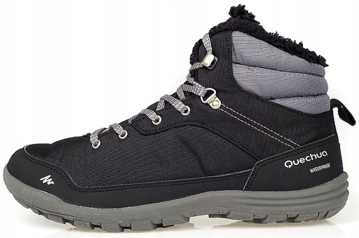 Buty zimowe, śniegowce QUECHUA przeznaczone są dla kobiet na regularne wędrówki po zaśnieżonym terenie zimą. Śniegowce są lekkie, ciepłe i wygodne, posiadają wodoodporną membranę oraz antypoślizgową, kauczukową podeszwę. But waży zaledwie 360 g w rozmiarze 39. Buty Quechua charakteryzuje solidność, wytrzymałość oraz wysoka jakość wykonania co zapewnia wysoki komfort użytkowania przez lata.