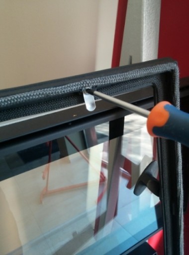 - W przypadku uszczelniania szyby po podklejeniu uszczelki przyłóż szybę i dokręć z umiarem dociski, podkładając pod nie krótkie kawałki uszczelki