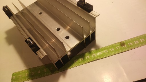 Radiator aluminiowy . Po wywierceniu 4 otworu idealny na mostek diodowy .