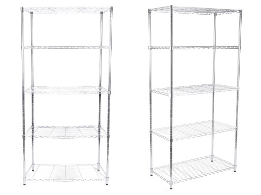 Regał magazynowy chromowany wyposażony w pięć regulowanych półek, o maksymalnym obciążeniu 80 kg. Regał dostarczamy w płaskim opakowaniu do samodzielnego montażu.