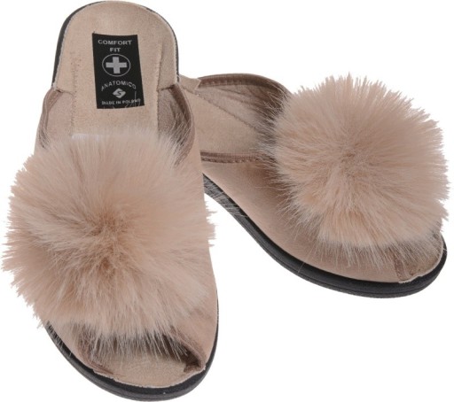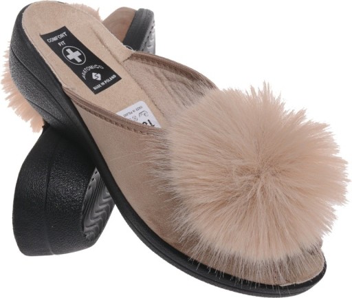 KLAPKI PANTOFLE DAMSKIE POLSKIE PROFIL POMPON be39