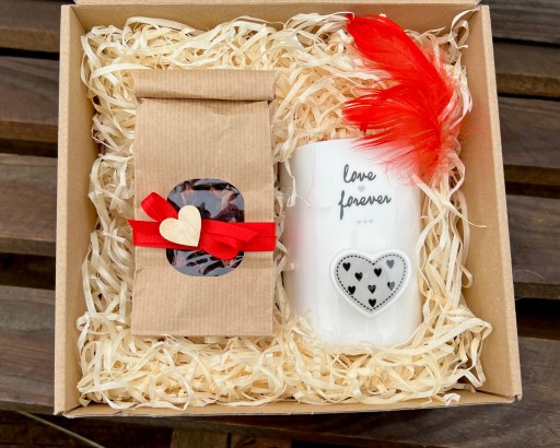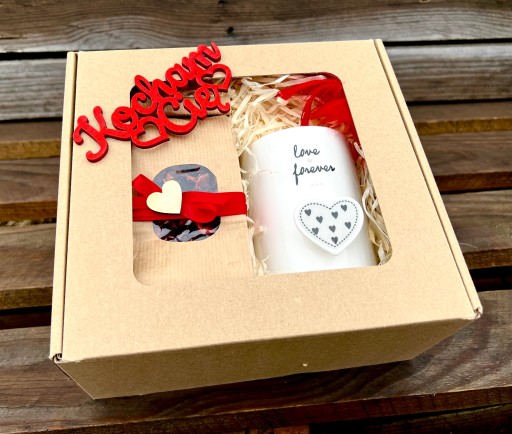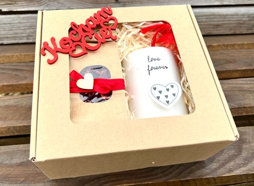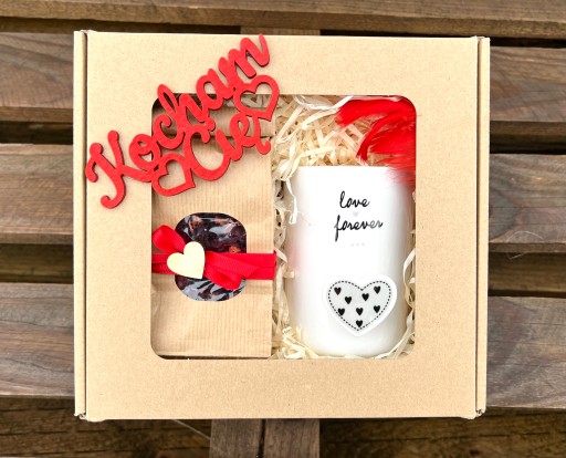 - całość zapakowana w pudełko - eko box z drewnianym napisem Kocham Cię.