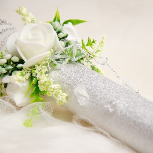 Piękna świeca do I Komunii Świętej, ręcznie zdobiona. Przygotowana z największym wyczuciem stylu. Wykonana z najwyższej jakości komponentów. Świeca zdobiona w uniwersalnej srebrnej kolorystyce, która idealnie sprawdzi się jako Pamiątka I Komunii Świętej, zarówno dla dziewczynki jak i dla chłopca. Uroku dodaje jej piękna, kwiatowa aplikacja - róża przyozdobiona roślinnym motywem.