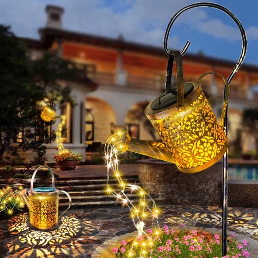 ☑️ Oryginalny kształt lampy w formie konewki odbija ciepłe światło w kształcie wzoru na ażurowym boku, tworząc niepowtarzalną romantyczną atmosferę. Druciki LED wyglądają jak strumienie gwiazd. Ciepłe, białe diody LED są nawleczone na delikatnym miedzianym drucie. najmniejszy powiew wiatru wprawi je w ruch, dodając uroku.