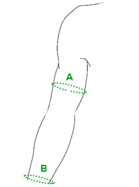 - B. Obwód nadgarstka - mierzymy na jednej wysokości obwód nadgarstka.