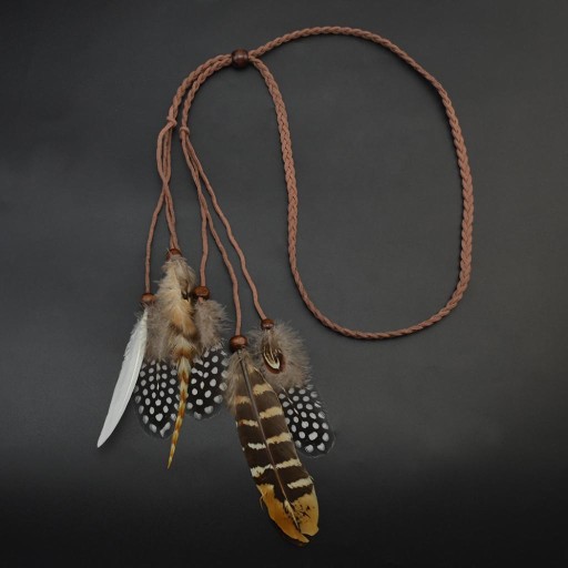 Женская повязка на голову в стиле бохо с пером и длинными волосами