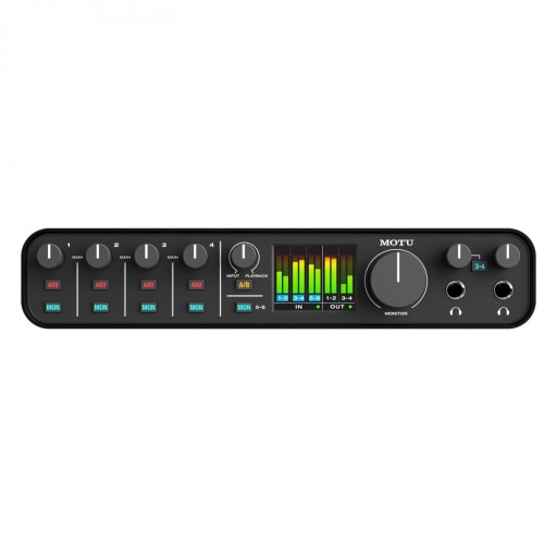 Przedni panel jest banalnie prosty w obsłudze i stanowi rozwinięcie idei stanowiącej myśl przewodnią poprzednich interfejsów MOTU.