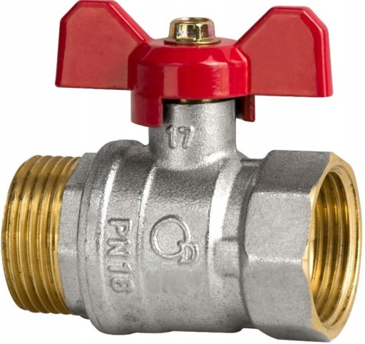 Wysokiej jakości kurki kulowe TYP 2400 do instalacji wodociągowej i centralnego ogrzewania w budynkach, wykonane z mosiądzu z uszczelnieniem kuli PTFE, wyposażone w dławik w wersji z aluminiowym motylkiem w kolorze czerwonym.