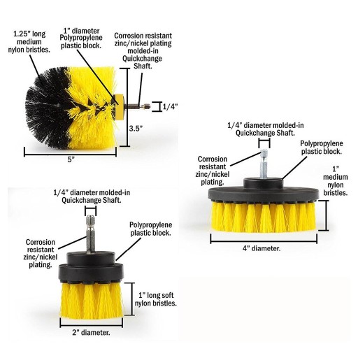 Zawiera nylonowe szczotki o średniej sztywności, które można przymocować do ulubionej wiertarki