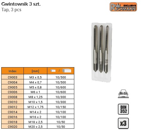 Gwintownik ręczny M14 x 3szt C9014