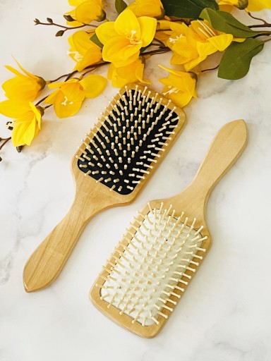 Ta drewniana szczotka jest lekka. Przeznaczona jest do włosów półdługich i długich. Igiełki szczotki zakończone kuleczkami, które podczas czesania delikatnie masują skórę głowy. Delikatny masaż głowy podczas codziennego użytkowania zmniejsza napięcie, rozluźnia ale również pobudza krążenie i poprawia mikrokrążenie i stymuluje wzrost włosów.