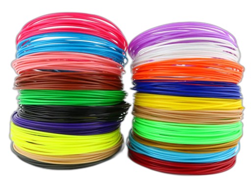 Filamenty w tym zestawie są różnokolorowe,cechują się dużą wytrzymałością co pozwala na trwałe przygotowywanie modeli.