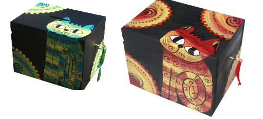 Drewniana skarbonka ręcznie malowana.