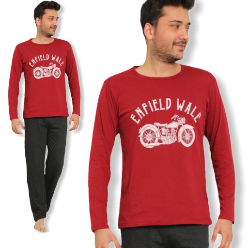 BAWEŁNIANA MĘSKA PIŻAMA Z DŁUGI RĘKAWEM I DŁUGIMI SPODNIAMI