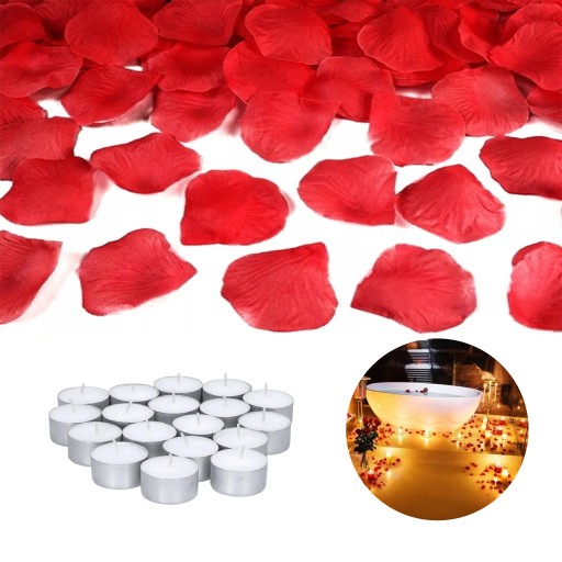 Chcesz urządzić romantyczny wieczór we dwoje w domu? Delikatne płatki róż wraz z małymi świeczkami zapewnią piękną dekorację i nadadzą wnętrzu romantycznego nastroju.