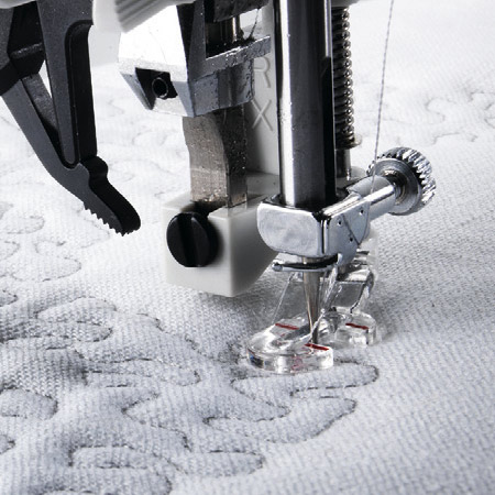 Jest idealnym narzędziem, gdy chcesz wykonać wyjątkowe ozdoby na swoich projektach, na odzieży czy narzutach. Możesz uszyć proste koła, kwiaty lub części koła, aby stworzyć niepowtarzalne obramowania lub wzory graficzne. Połącz koła w różnych rozmiarach i twórz duże wzory. Prawie wszystkie ściegi użytkowe lub ozdobne* mogą być używane podczas szycia za pomocą tej przystawki.