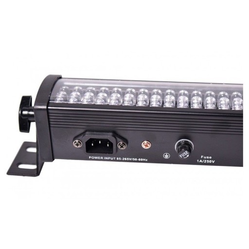 Naświetlacz LED ma całkowitą długość ponad 1 metra. Gęsty system diod RGB podzielony został na 16 niezależnych sekcji. Dzięki temu możliwe jest tworzenie zróżnicowanych efektów świetlnych i ciekawych zestawień kolorystycznych. Stosunkowo duży kąt świecenia zapewnia szeroki zakres pokrycia światłem dedykowanej przestrzeni. Uchwyty po obu stronach korpusu umożliwiają pracę listwy w pozycji stojącej lub jej instalację na rampach oświetleniowych i kratownicach scenicznych.