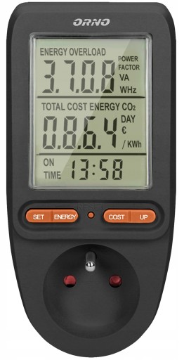 Cyfrowy licznik pomiaru energii ORNO OR-WAT-435, tzw. watomierz pozwala na nadzorowanie i sprawdzenie ilości, kosztu pobieranej energii przez urządzenie pod, które zostanie podłączone. Dzięki niemu można łatwo sprawdzić, które urządzenie pobiera nadmierną ilość energii i wprowadzić skuteczny plan oszczędzania. Duży wyświetlacz LCD zapewnia łatwą obsługę oraz czytelny i przejrzysty pomiar.