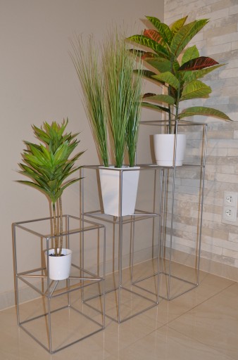 Prezentujemy nowoczesny kwietnik metalowy w kolorze srebrnym o wysokości 40 cm, utrzymany w modnym industrialnym stylu typu loft. Wyjątkowy stojak na kwiaty, który sprawdzi się jako uzupełnienie przestrzeni mieszkalnej nadając pomieszczeniu unikalnego charakteru. Z jego pomocą wyeksponujesz kwiaty lub zioła. Idealny do domu, ale również na balkon, taras lub do biura. Sprawdzi się dla roślin żywych oraz sztucznych. Wykonany w całości z metalu, co pozwala na łatwe utrzymanie w czystości.