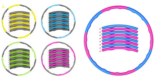 Hula hop składa się z 8 elementów, dzięki czemu z łatwością możesz złożyć koło po skończeniu ćwiczeń i zaoszczędzić miejsce.