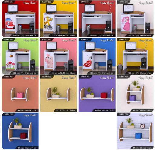 Mogą Państwo wybierać spośród prawie 90 modeli mebli (szafki nocne, kufry na zabawki, komody, regały, szafy, biurka, półki) przeznaczonych do dowolnego zaaranżowania pokoju dziecka.