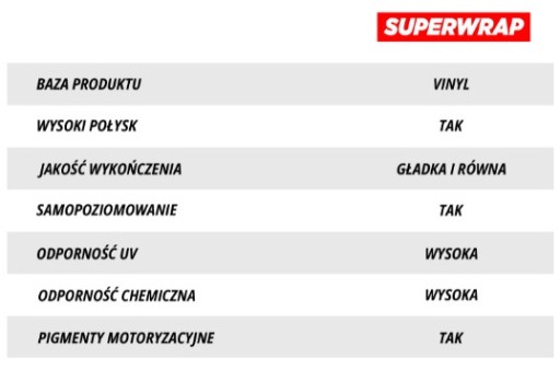UWAGA: Aplikuj SUPERWRAP jedynie na lakierowane lub metalowe powierzchnie, nie rekomendujemy aplikacji na plastiki, naklejki, gumowe czy laminowane elementy. Powierzchnia aplikacji powinna być wolna od uszkodzeń mechanicznych takich jak pęknięcia, rysy odpryski.