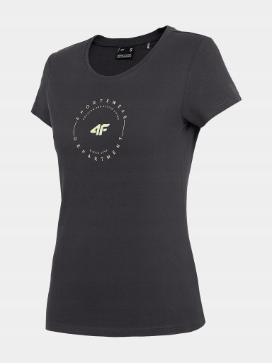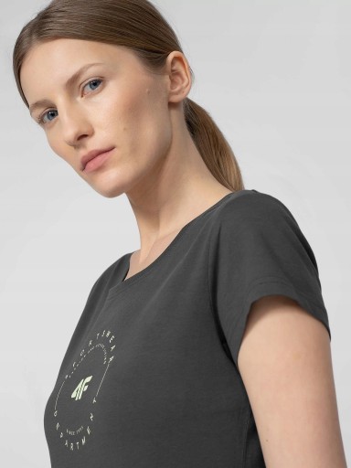 Damska koszulka 4F z krótkim rękawem z nadrukiem z przodu i logiem.