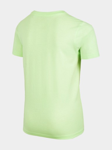 Koszulka chłopięca 4F z krótkim rękawem, z dużym wakacyjnym nadrukiem w palmy z przodu. W kolorze producenta - LIMONKA.