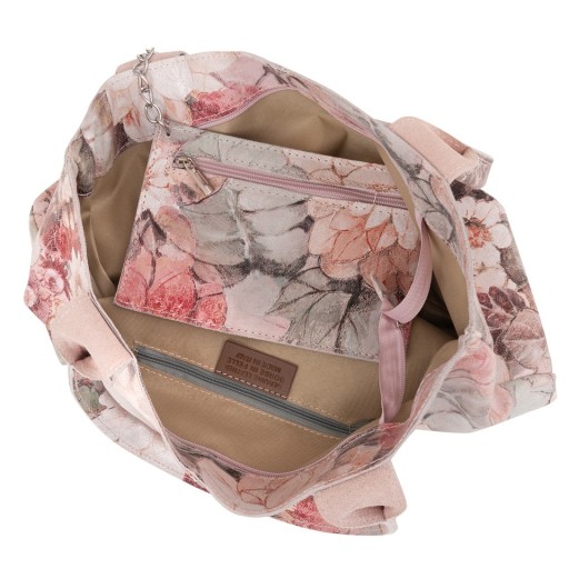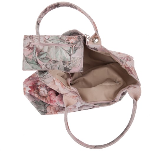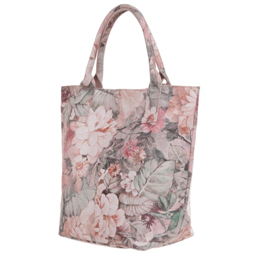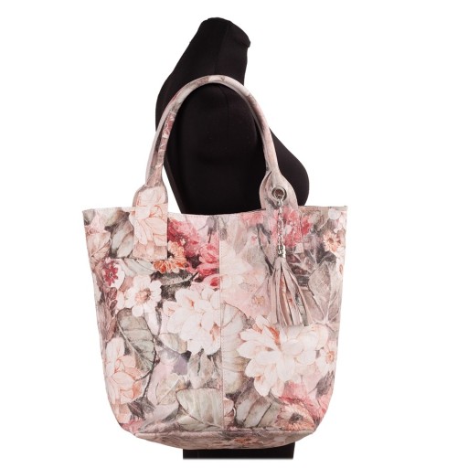 Vera Pelle - KWIATY kolorowa pastelowa włoska A4 skórzana torebka worek shopper bag ZAMYKANA NA ZAMEK