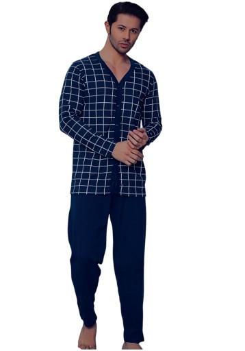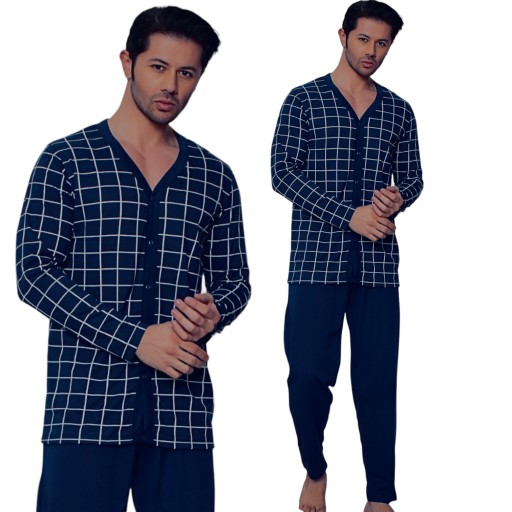 BAWEŁNIANA MĘSKA PIŻAMA CAŁA ROZPINANA Z DŁUGI RĘKAWEM I DŁUGIMI SPODNIAMI