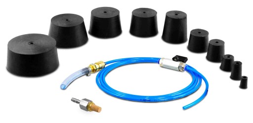 Zestaw składa się z 10 korków o odpowiednio dobranych rozmiarach, dzięki czemu możemy pracować z rurami od średnicach od 9 do 105mm.