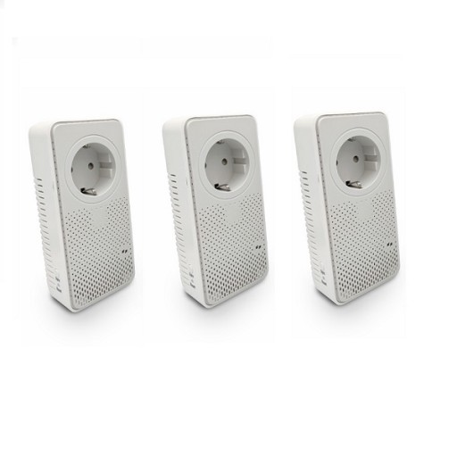 Zestaw trzech wzmacniaczy sygnału typu PLC PowerLine PG-9073LG pozwala na zwiększenie zasięgu sieci komputerowej na wielu urządzeniach podłączonych jednocześnie w całym domu lub biurze. Zestaw może sprawdzić się w lokalach usługowych, czy firmach zajmujących duże powierzchnie lub znajdujących się na więcej niż jednym piętrze budynku. Dzięki tym transmiterom możesz cieszyć się bezproblemową łącznością z internetem z prędkością do 1000 Mbit/s.