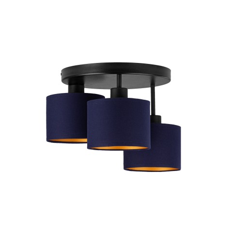 LAMPA SUFITOWA PLAFON OKRĄGŁY ABAŻUR TKANINA GRANATOWY-ZŁOTY LED