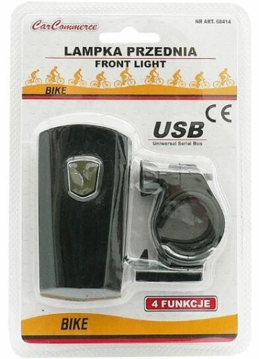 Lampka przednia na kierownicę, ładowana na USB - do 10 h używania po ładowaniu.