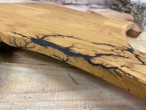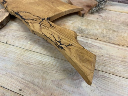 Ręcznie wykonana deska z drewna dębowego. Deska jest wypalana prądem, wypalone wzory są wyjątkowe i niepowtarzalne. Drewno zaimpregnowane naturalnym olejem.