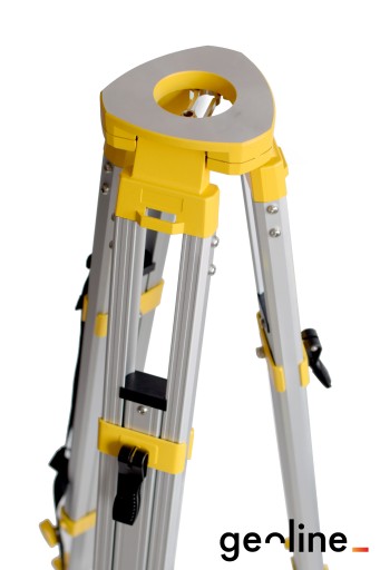 Statyw Geoline średniego obciążenia z podwójnym zabezpieczeniem na zaciski klamrowe oraz śruby wykonany z aluminium.