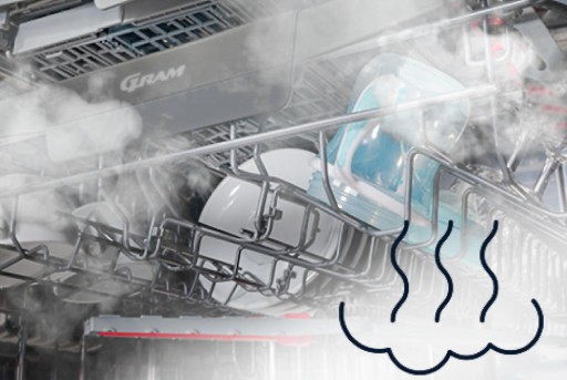 Zmiany ustawień zmywania możesz dokonać na panelu zewnętrznym i wyświetlaczu elektronicznym LED, wbudowanym w drzwiach urządzenia. Prosta i wygodna obsługa, czytelne symbole - wybierz to, co najlepsze z GRAM.