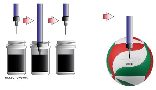 Przed włożeniem do zaworu należy zawsze zwilżyć igłę do pompowania gliceryną ,olejkiem ,w ostateczności wodą