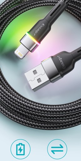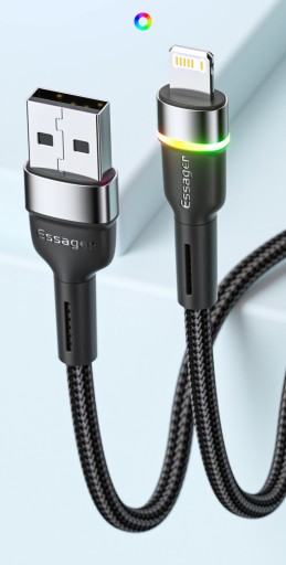 ORYGINALNY PRZEWÓD LIGHTNING ESSAGER® Z ŁADOWANIEM DO 2.4A I WBUDOWANĄ DIODĄ LED!