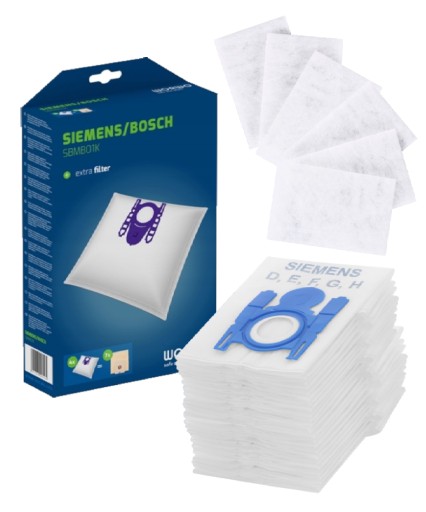 Worki z mikro włókniny syntetycznej oraz filtry ochronne silnika przeznaczone do odkurzaczy marki BOSCH / SIEMENS