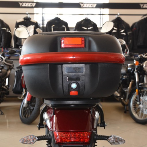 Kufer Moretti z oparciem dla pasażera- pojemność 30 L, czarny mat, czerwone odblaski