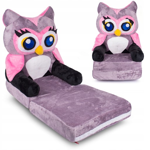 Pluszowy fotelik dziecięcy - fotel pluszowy dla dziecka - Mądra SOWA szary.