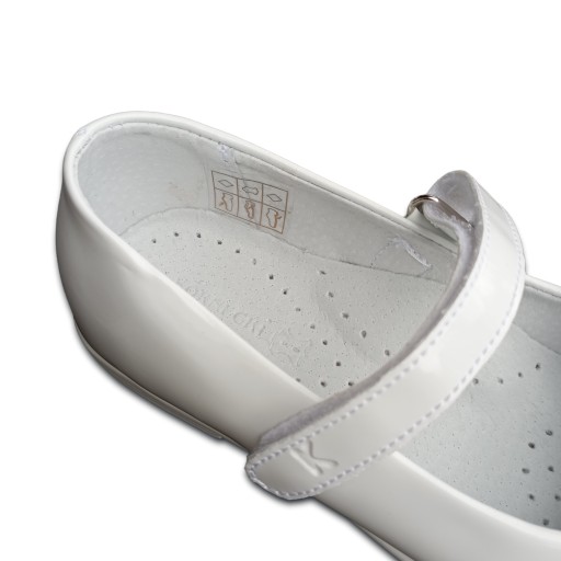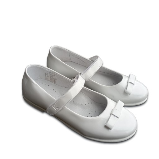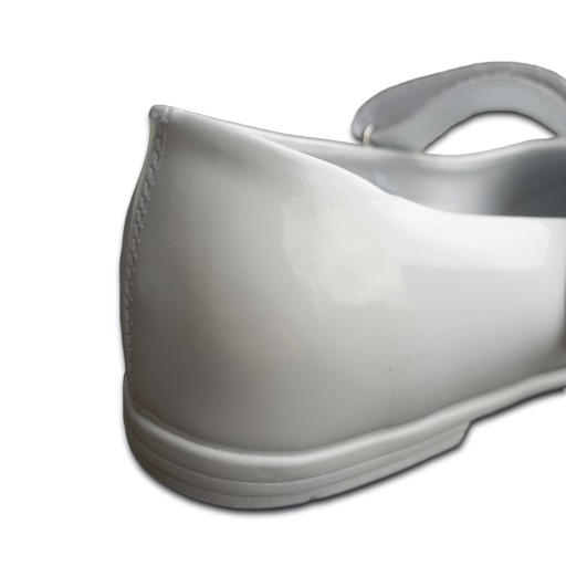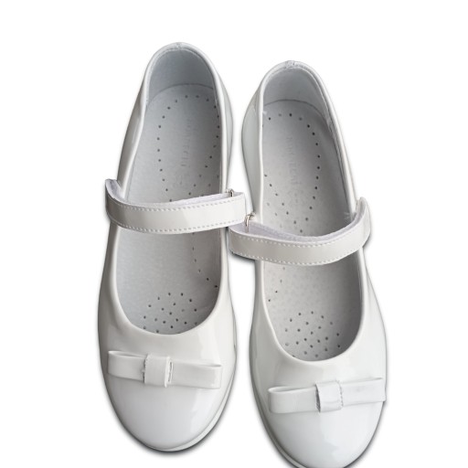 BALERINKI BIAŁE wygodne lakierowane buty wizytowe w kolorze białym. Idealna propozycja obuwia na Komunię, jak również inne ważne uroczystości. Wyróżnia je troska o bezpieczeństwo dziecka oraz fason zgodny z najnowszymi trendami.