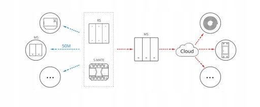 Urządzenia z funkcją eWeLink-Remote pracują i komunikują się bezpośrednio poza WiFi. M5 jako "bramka" przekazuje odpowiednie statusu do aplikacji.