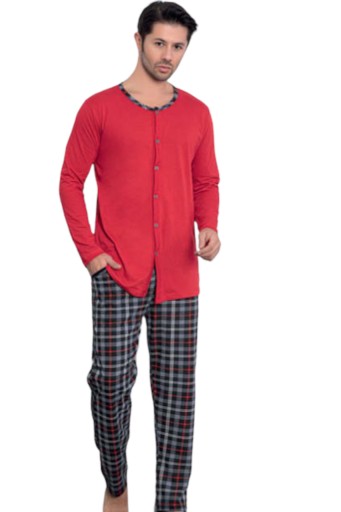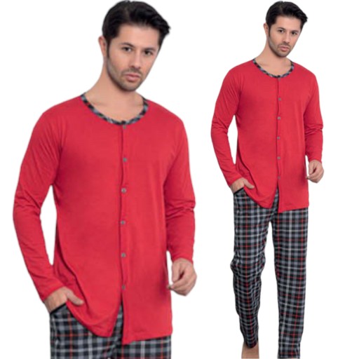 BAWEŁNIANA MĘSKA PIŻAMA CAŁA ROZPINANA Z DŁUGI RĘKAWEM I DŁUGIMI SPODNIAMI