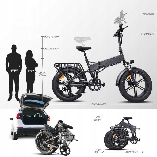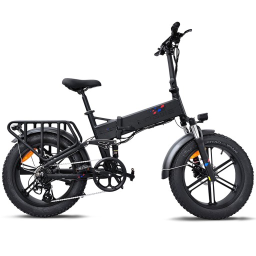 Rower elektryczny ENGWE Engine Pro. Wydajny rower elektryczny z grubymi oponami z nowym mocnym bezszczotkowym silnikiem 750 W (moc szczytowa 1000 W). Maksymalna prędkość to 25 km/h w trybie wspomagania. Prędkość jest zablokowana do 25 km/h ze względu na przepisy UE. Rower posiada 20-calowe koła odpowiednie do jazdy zarówno po mieście jak i w terenie.