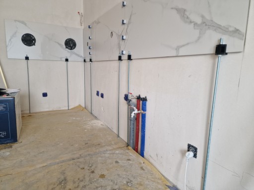 Polskiej produkcji solidny system do poziomowania płytek na ścianie bez konieczności wiercenia.