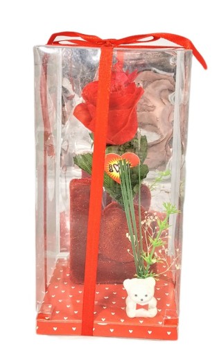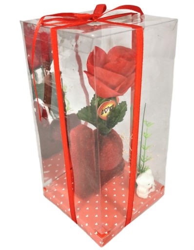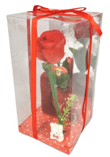 Lo z różą. W przezroczystym kartoniku.