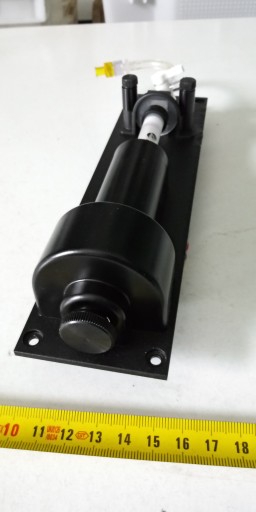 Wysokiej klasy pompa infuzyjna napędzana silnikiem krokowym, dozująca objętość 2mL, przetestowana w pełni sprawna. Pompa sprzęgnięta jest z czujnikiem optycznym (ostatnie zdjęcie), który podaje napięcie pod dojechaniu tłoka pompy do końca. Przy silniku krokowym znajduje sie pokrętło, do ewentualnego ręcznego napędu pompy
